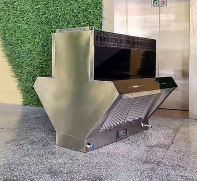 作為商業用途時,由于不需要連接煙管或煙道,適合任何環境下的餐飲廚房,商場中島等等均可安裝使用,實現商業餐飲功能;在室內吊裝時機器前后兩面,可以同時烹飪,同時進煙,在超過國家環保要求的同時,實現了室外“0”排放,室內無污染,增加了烹飪面積,降低了餐飲設施成本;同時正面出風的形式對廚房間的空間高度沒有了要求,非常適合小吃餐車,集裝箱式美食房,戶外小型美食房等餐飲場所。